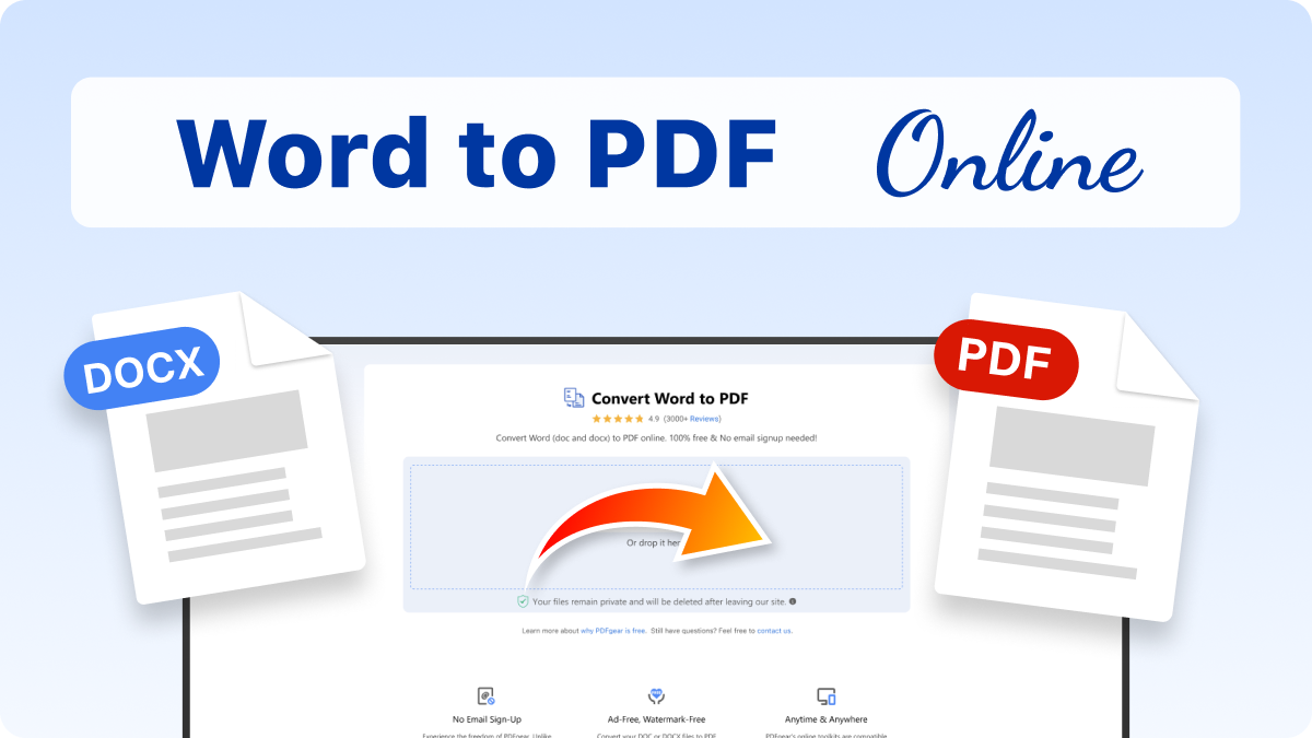 Convert your DOC or DOCX files to PDF with PDFgear and enjoy outputs free from watermarks and interruptions. Our online tool ensures a clean, ad-free conversion experience.