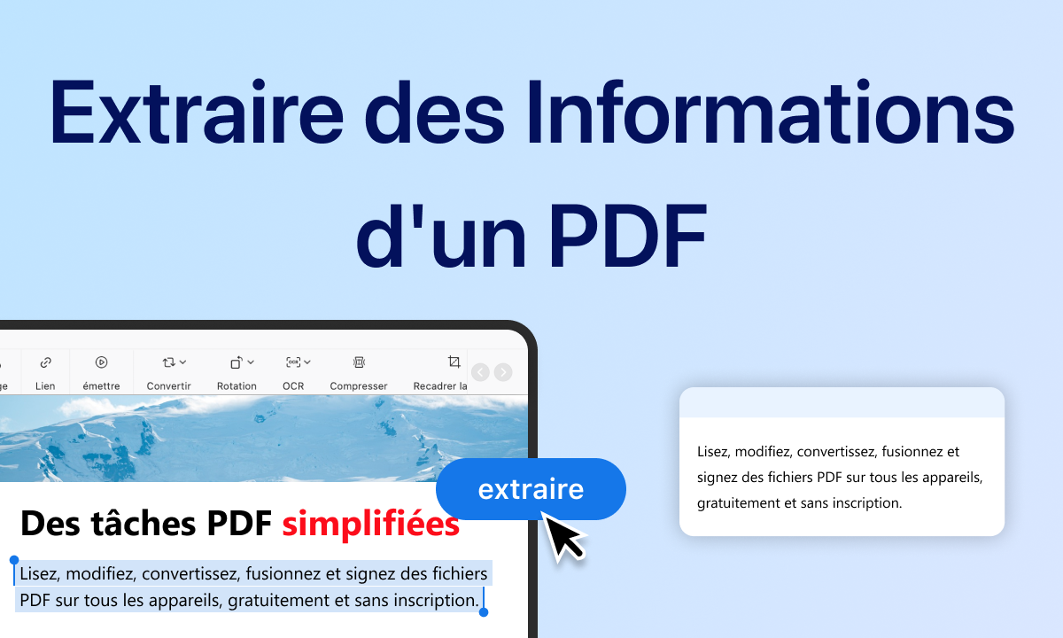 PDFgear fonctionne parfaitement sur tous les appareils, que ce soit un ordinateur, une tablette ou un smartphone. Vous pouvez extraire des pages depuis n’importe quel navigateur sur Windows, Mac, Linux, Android ou iOS. Accessible à tout moment avec une connexion internet, PDFgear offre flexibilité et compatibilité multiplateforme.